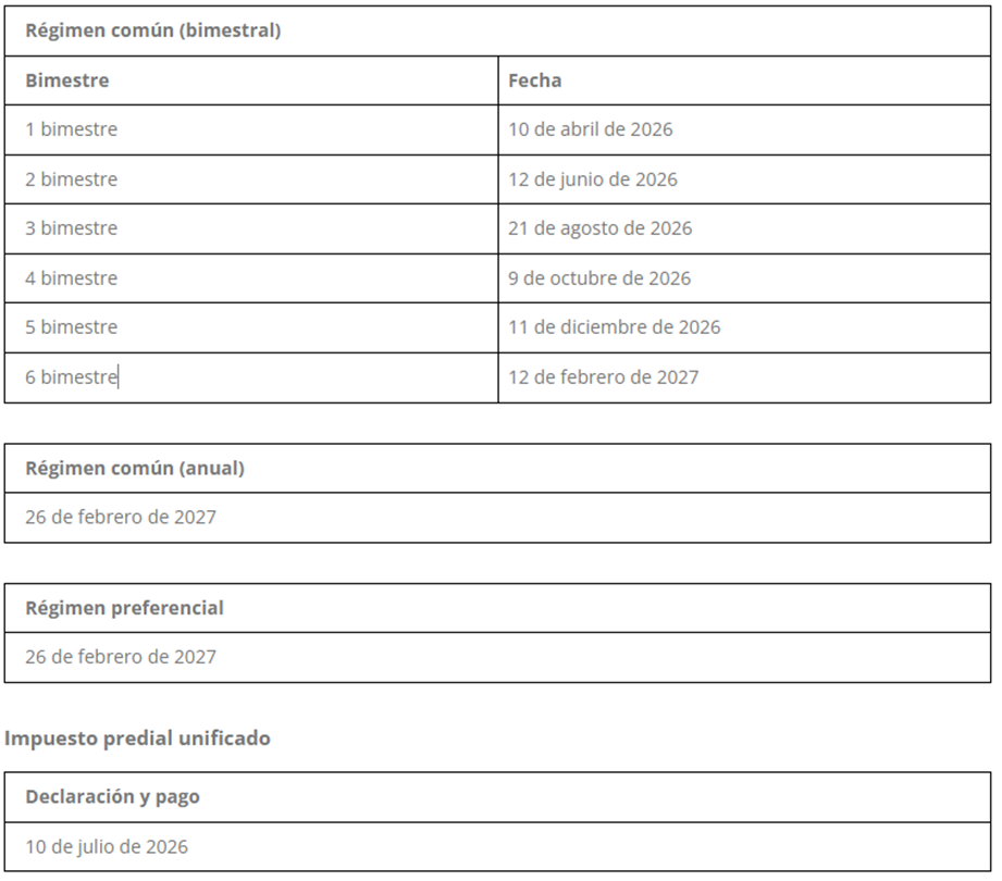 Se definió el calendario de pagos del impuesto de industria y comercio (ICA), el impuesto predial unificado, el impuesto sobre vehículos automotores, entre otros. Además, se establecieron las fechas de pronto pago para que los contribuyentes puedan acceder a descuentos tributarios y las fechas de pago para aquellos que deseen acogerse al Sistema de Pago Alternativo por Cuotas Voluntario (SPAC).